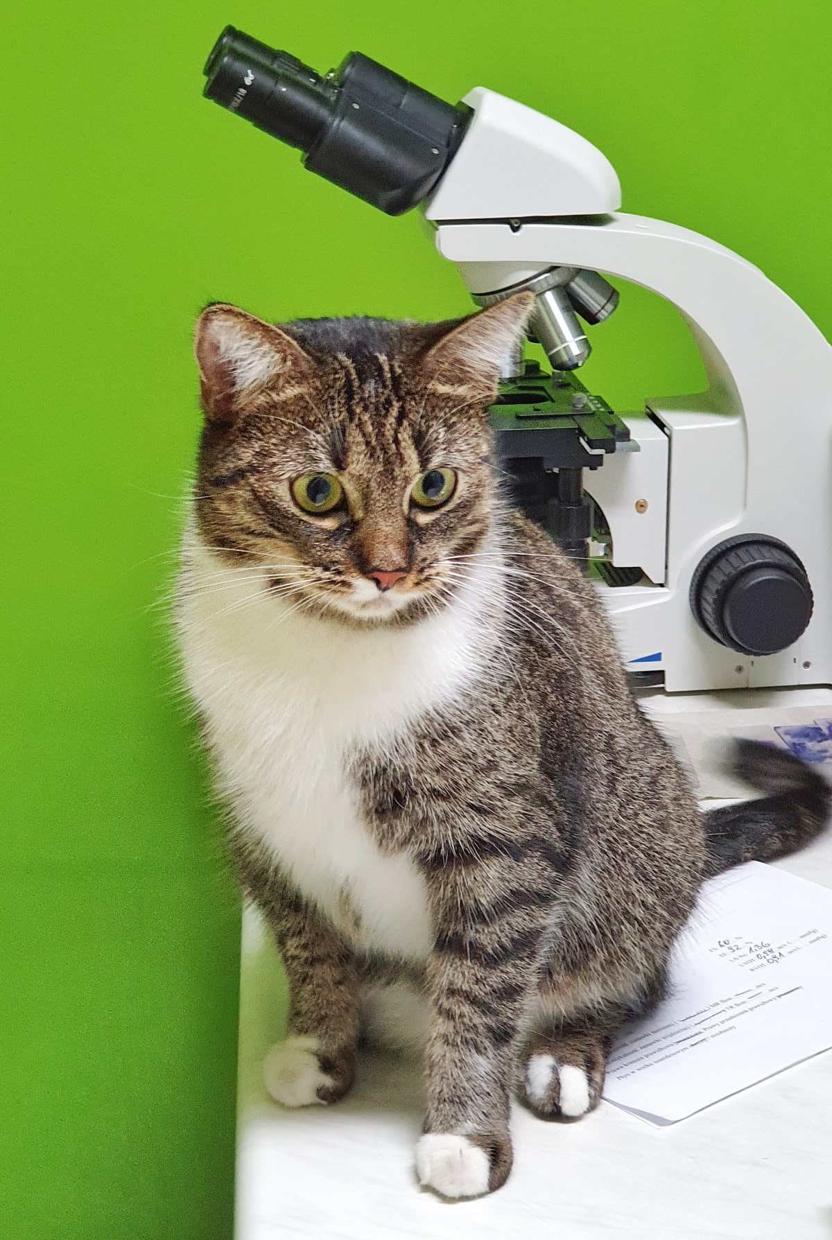 Dla przyjaciół Pan Pacek. Jest naszym współpracownikiem od kwietnia 2021 kiedy został znaleziony przez doktor Magdę potrącony na ulicy. Z pacjenta stał się towarzyszem i kotem pomocnikiem. Wzorowo rozprasza pieski podczas wizyty i powoduje uśmiech u opiekunów czworonogów. Pomimo niepełnosprawości (paraliż tylnych kończyn) jest radosnym i pełnym życia kotem uwielbianym przez cały zespół.
